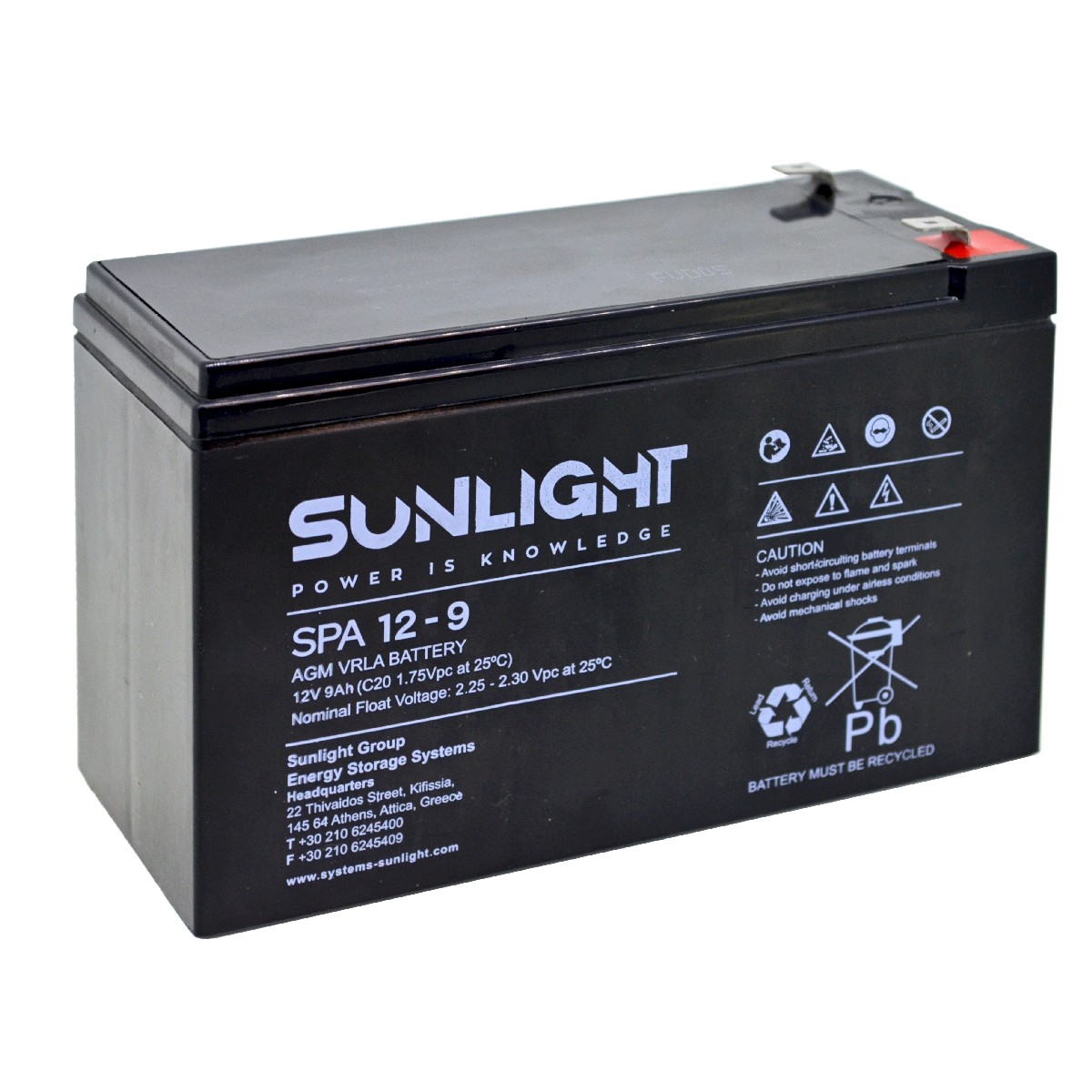Μπαταρία Sunlight VRLA AGM (12V 9Ah) 2.6kg 93mm x 65mm x 150mm
