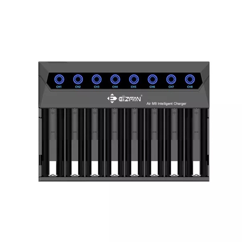 Ο EiZfan Air M8 είναι συμβατός με οποιονδήποτε συνδυασμό μπαταριών ιόντων λιθίου Ni-Mh, Ni-Cd και 3.6V/3.7V και οποιαδήποτε χωρητικότητα.Τοποθετήστε την επαναφορτιζόμενη κυλινδρική μπαταρία με διάμετρο κάτω από 26mm και ύψος 34-75mm. χρησιμοποιώντας σταθ