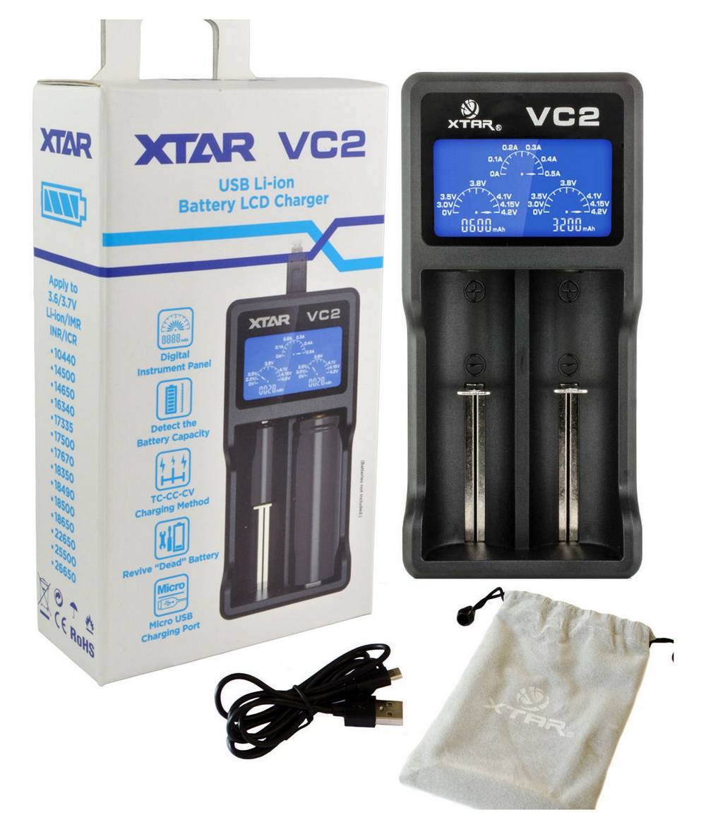 Φορτιστής Μπαταριών Βιομηχανικού Τύπου Xtar VC2 USB, 2 Θέσεων με Ένδειξη Επιπέδου Φόρτισης για 18650