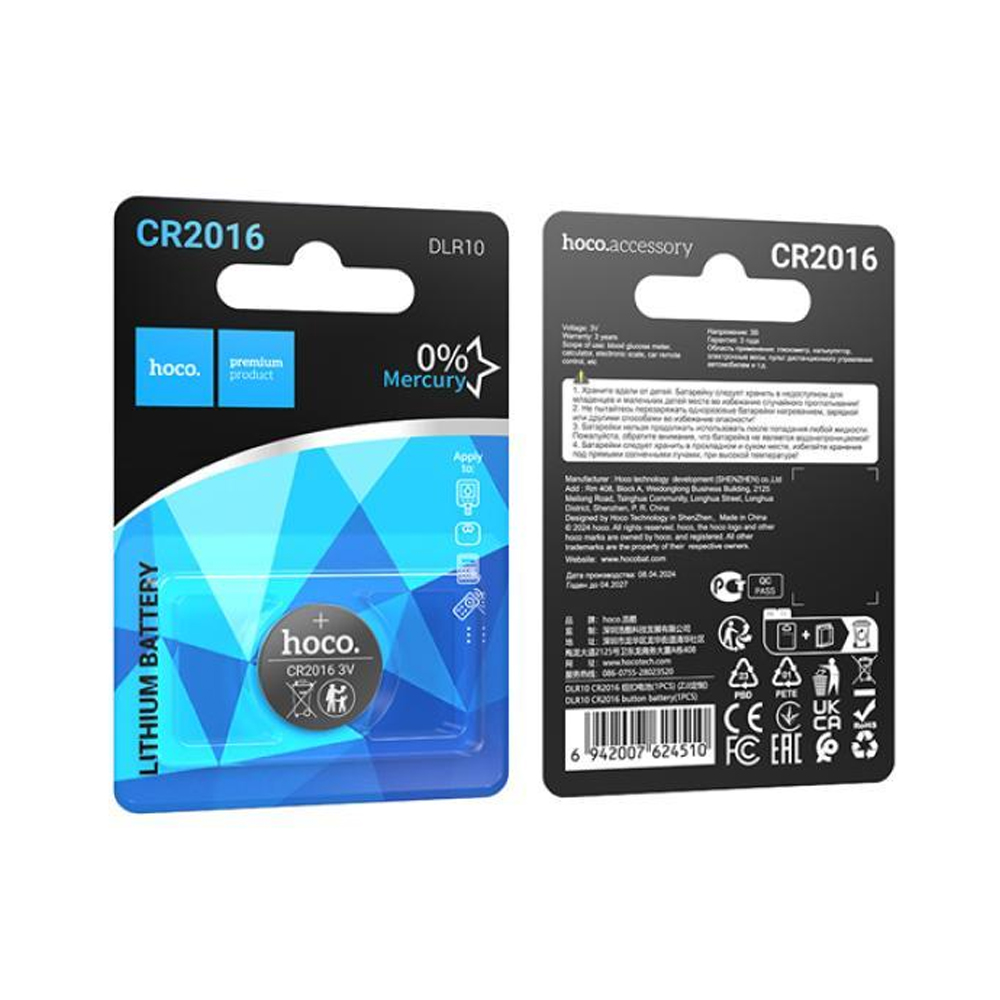 Buttoncell Lithium Hoco DLR10 CR2016 Τεμ. 1