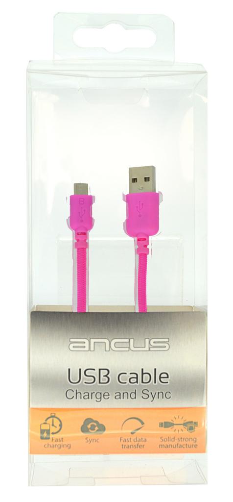 Καλώδιο σύνδεσης Κορδόνι Ancus USB σε Micro USB με Ενισχυμένες Επαφές Ρόζ
