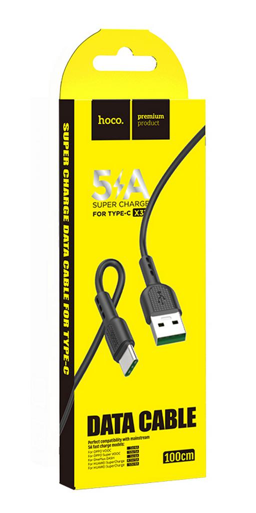 Καλώδιο σύνδεσης Hoco X33 Surge USB σε USB-C Fast Charging 5A Μαύρο 1μ