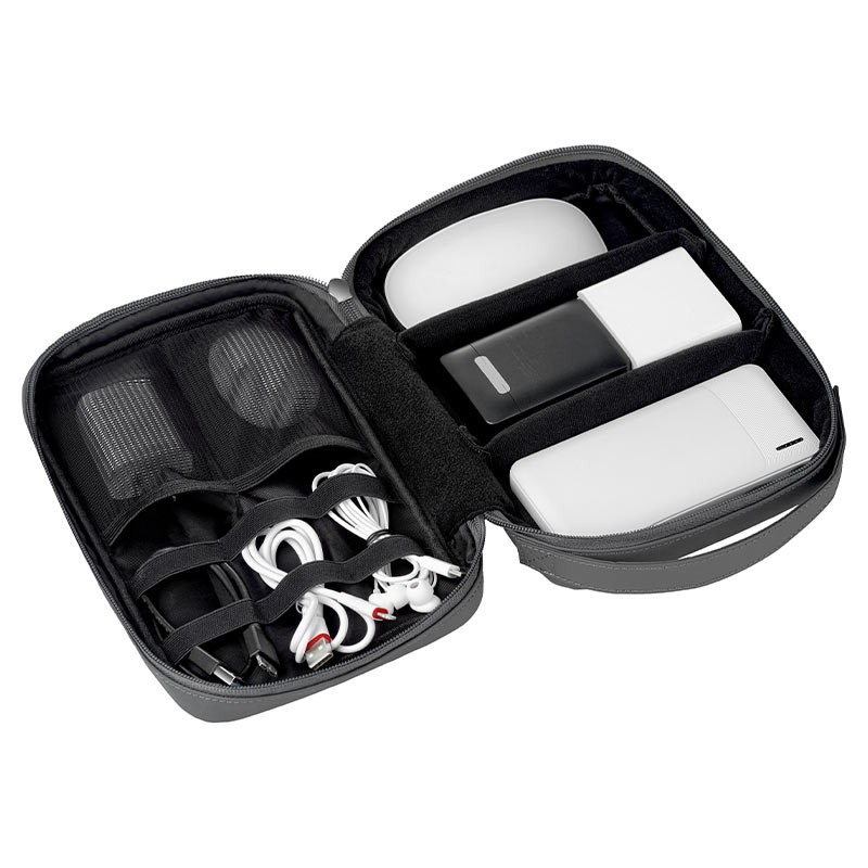 Αυτή η κομψή και ευέλικτη τσάντα έχει σχεδιαστεί για να διατηρεί τα gadget σας οργανωμένα, προστατευμένα και εύκολα προσβάσιμα ενώ βρίσκεστε εν κινήσει. Κατασκευασμένη από υψηλής ποιότητας αδιάβροχο ύφασμα, αυτή η μαύρη τσάντα δεν είναι μόνο κομψή αλλά κ