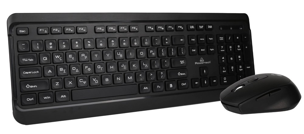 Set περιφερειακών για PC από την Powertech που αποτελείται από ασύρματο πληκτρολόγιο και ασύρματο οπτικό ποντίκι.