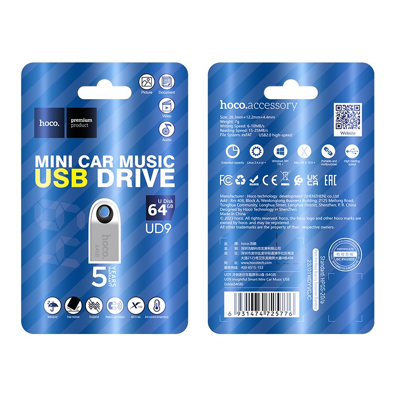 Flash Drive Mini Car Music Hoco UD9 Insightful 64GB USB 2.0 Mini Size Ασημί