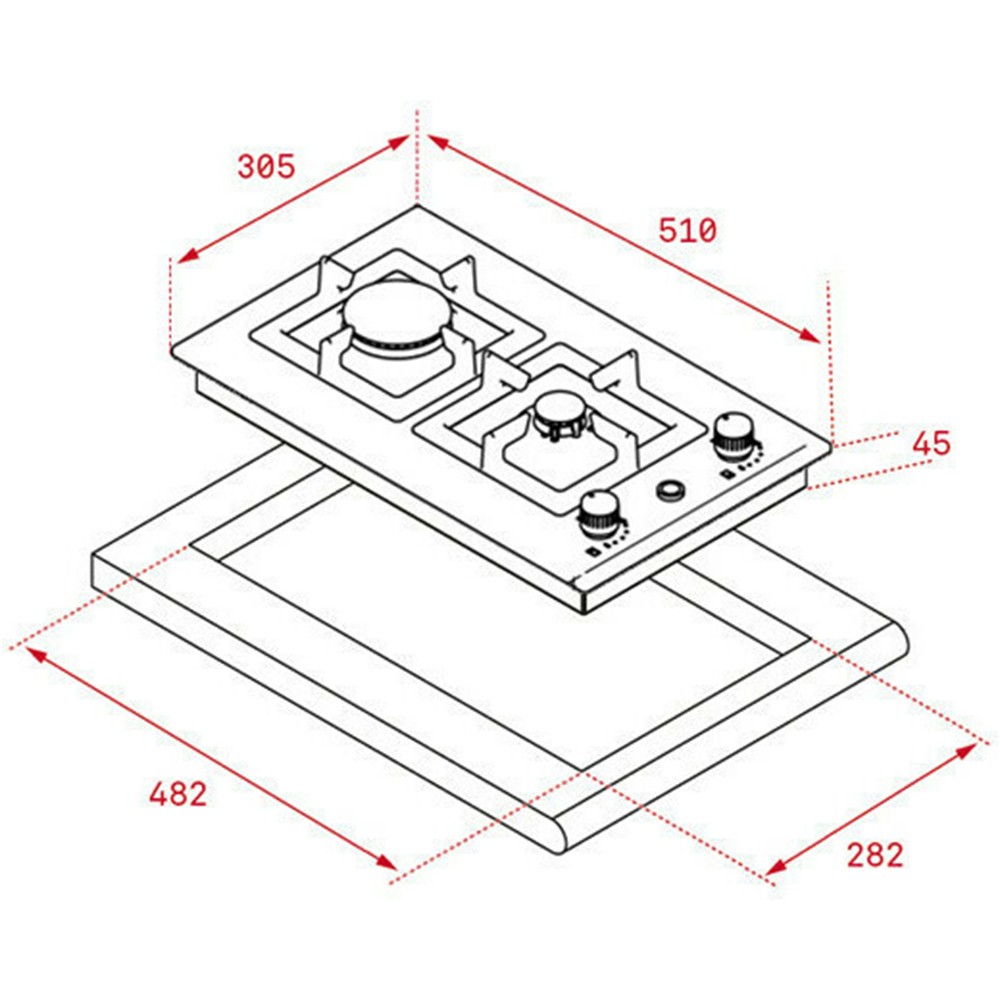 Εντοιχιζόμενη Ανοξείδωτη Εστία Γκαζιού Domino TEKA 2 Ζώνες 30cm EFX 30.1 2G AI AL CIΑ Ασημί