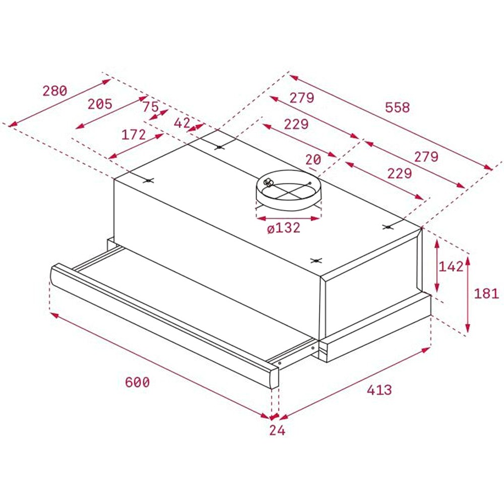 Συρόμενος Απορροφητήρας TEKA 2 Ταχύτητες Τουρμπίνα Διπλής Απορρόφησης 304m3/h 60cm TL 6310 BK Μαύρο