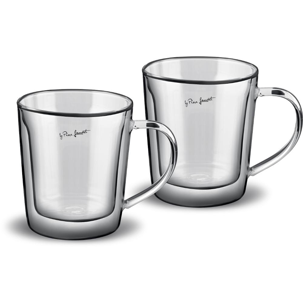 Σετ Φλιτζάνια Καφέ Γυάλινα με Χερούλι & Διπλό Τοίχωμα 350ml VASO Lamart LT9036 Διάφανο 2τμχ