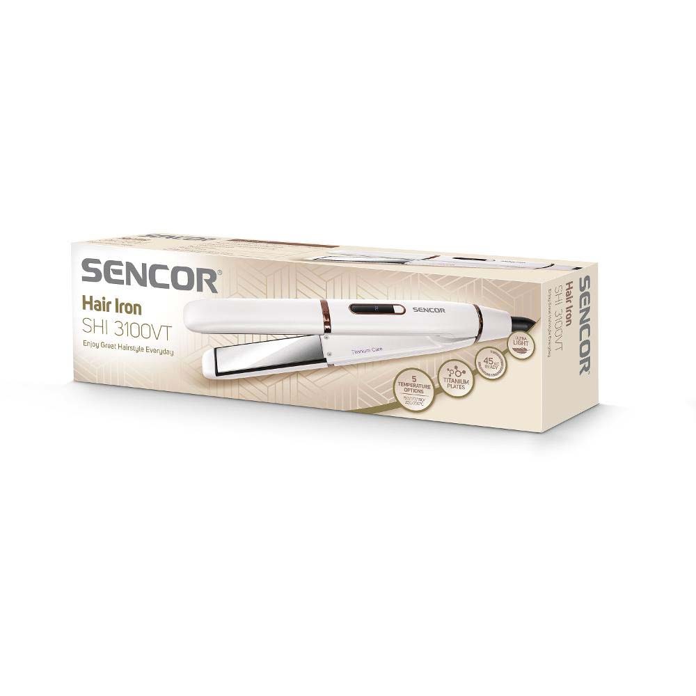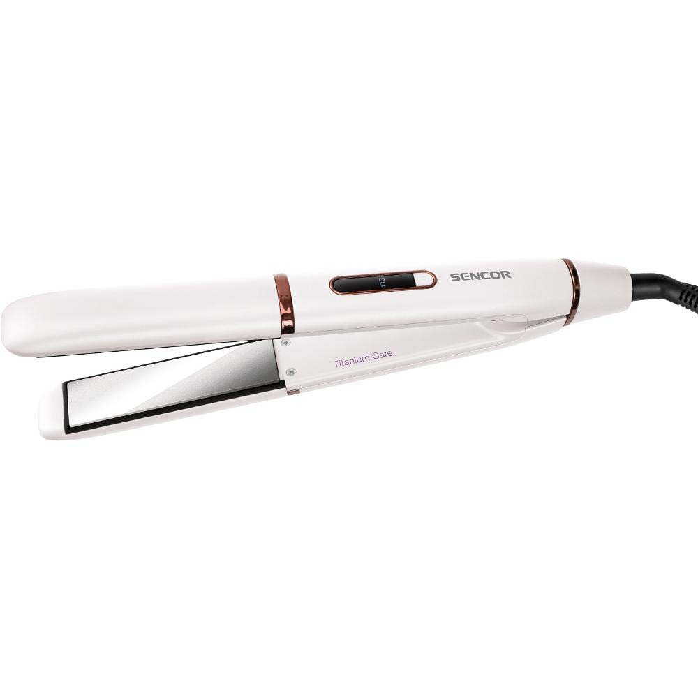 Πρέσσα μαλλιών απο τη Sencor. Με 5 ρυθμίσεις θερμοκρασίας 150/170/190/220/230 °C. Με πλάκες τιτανίου για τέλειο και κομψό αποτέλεσμα. Σχεδιασμός κατάλληλος για ίσιωμα και στυλιζάρισμα μπούκλας. Με ασφάλεια ανοίγματος και κλεισίματος. Ψηφιακή οθόνη με λευ