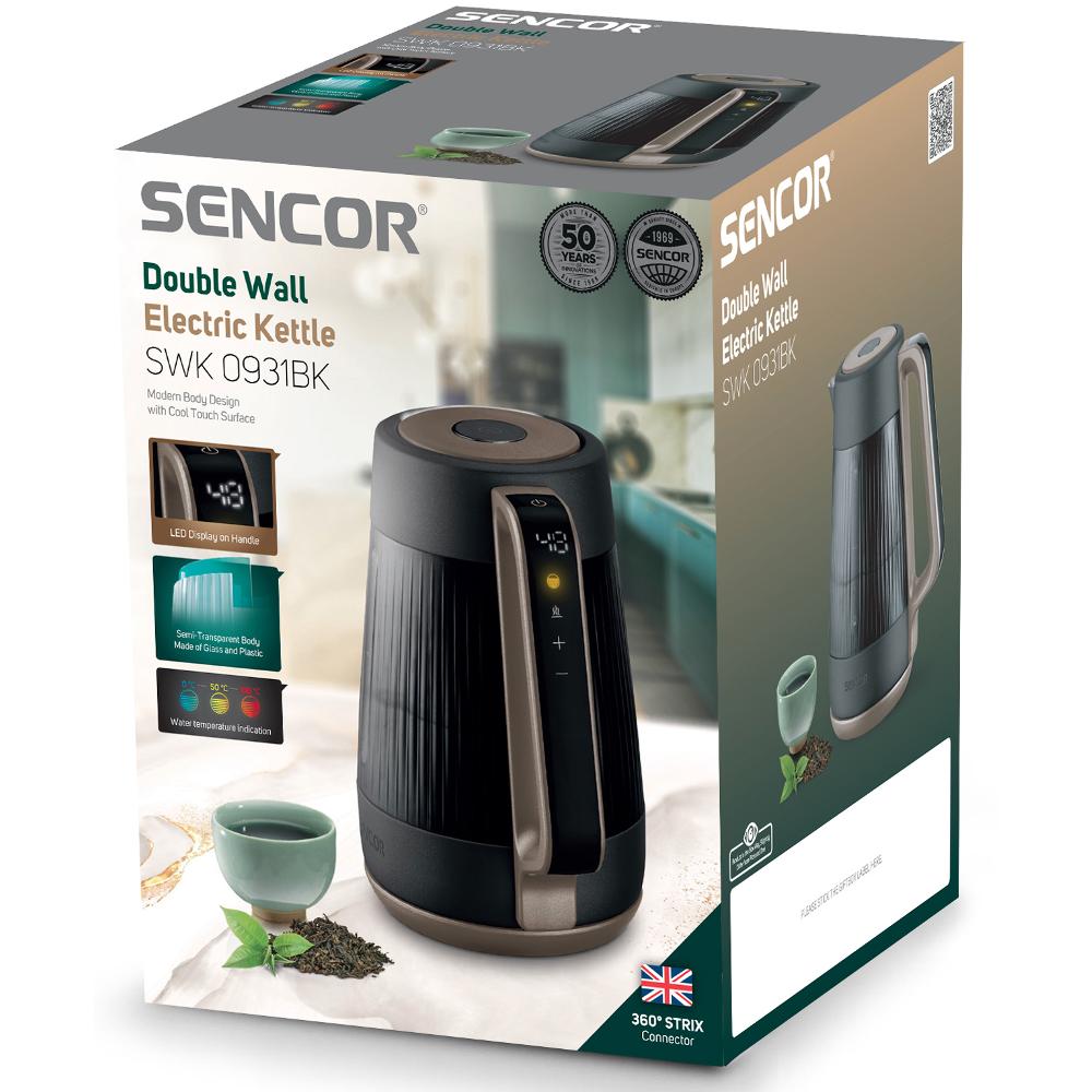 Βραστήρας με Γυάλινη Κανάτα και Επιλόγη Θερμοκρασίας 1,7lt 2000W Sencor SWK 0931BK Μαύρo/Καφέ
