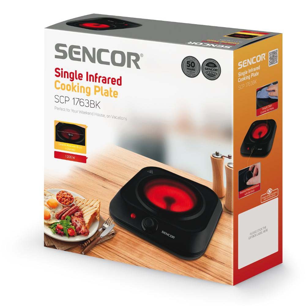 Φορητή Κεραμική Εστία Μονή 1200W 19cm Sencor SCP 1763BK Μαύρη