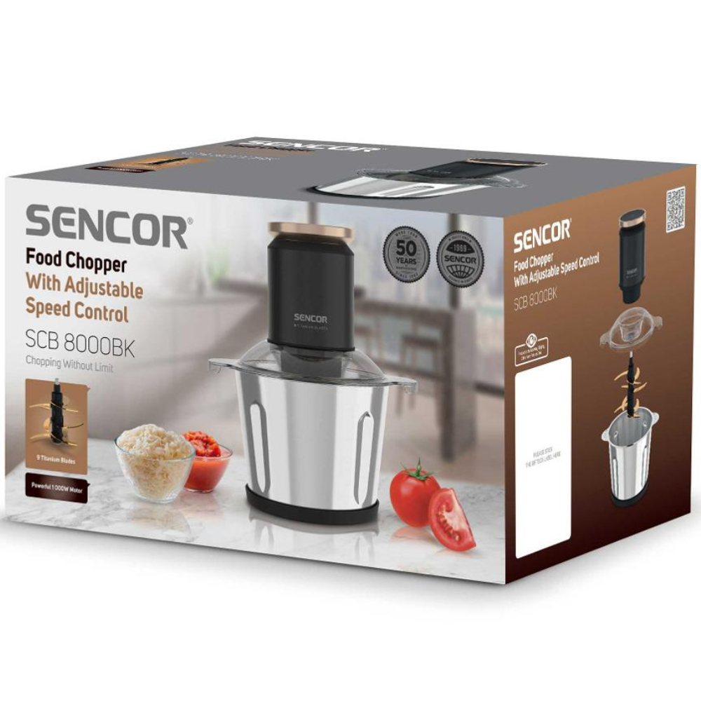 Πολυκόπτης Multi με Ανοξείδωτο Δοχείο & 9 Λεπίδες Τιτανίου 3000ml 800W Sencor SCB 8000BK