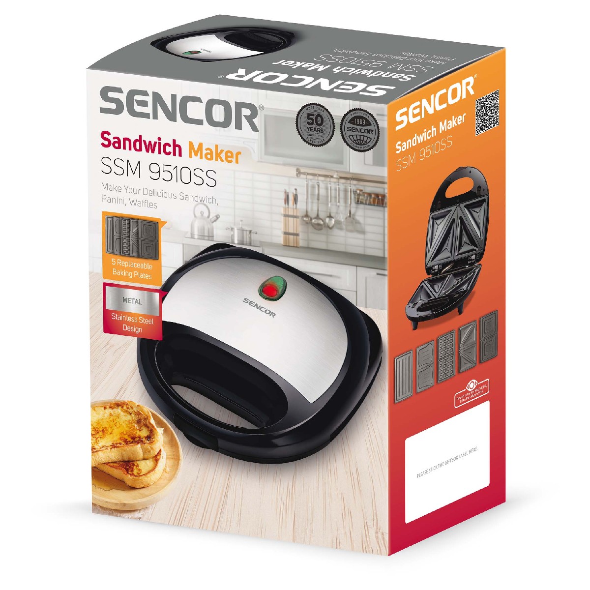 Τοστιέρα με 5 Αποσπώμενες Πλάκες CoolTouch Sencor SSM 9510SS Ασημί