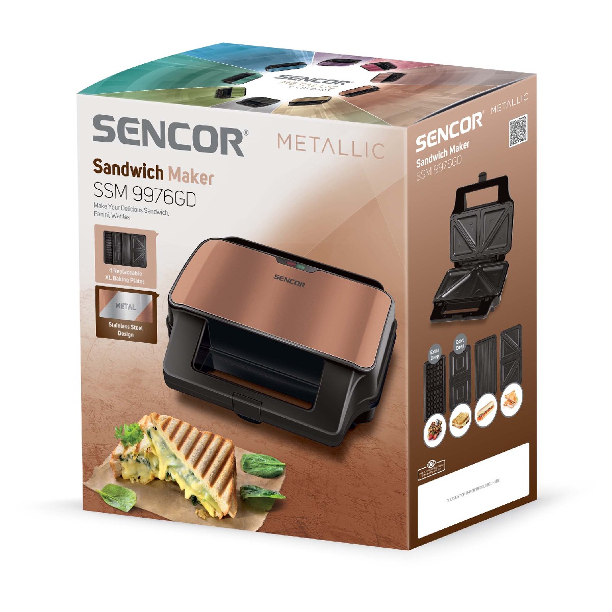 Τοστιέρα με 4 Αποσπώμενες Πλάκες CoolTouch Sencor SSM 9976GD Χρυσό