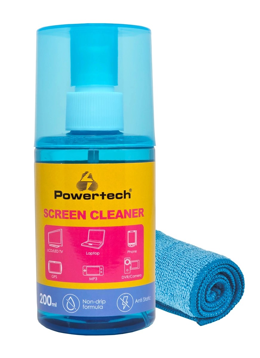 POWERTECH σπρέι καθαρισμού οθόνης PT-1312 με πανί μικροϊνών, 200ml