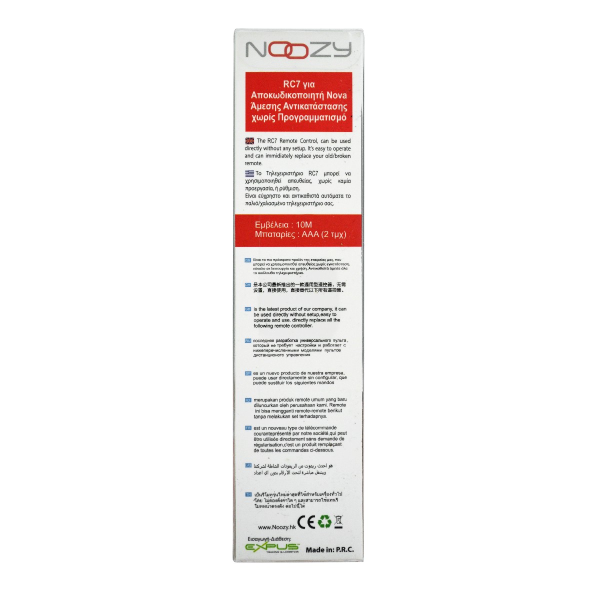 Τηλεχειριστήριο Noozy RC7 για Αποκωδικοποιητή Nova Άμεσης Αντικατάστασης χωρίς Προγραμματισμό. Εμβέλεια έως 10μ. Λειτουργεί με 3 μπαταρίες ΑΑΑ