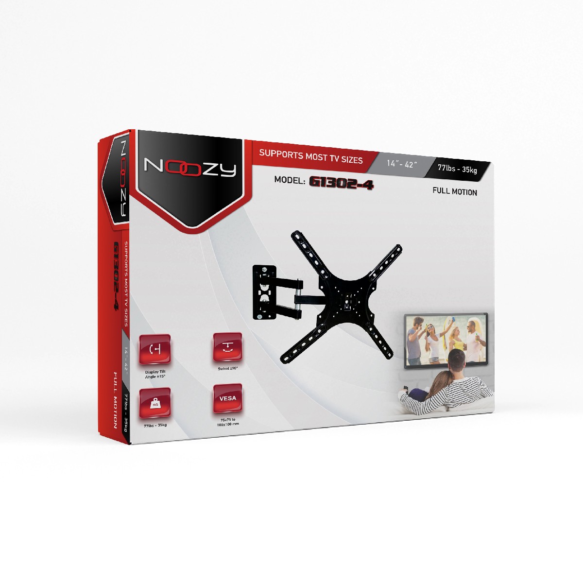 Βάση Στήριξης Noozy G1302-4 για Τηλεοράσεις LED/LCD/PDP 14'' - 42'' με δυνατότητα κάθετης κλίσης +15 / -15 μοίρες και περιστροφή +45 / -45 μοίρες. Μέγιστο βάρος αντοχής 35kg και VESA από 50x50mm έως 400x400mm. Εύκολη και γρήγορη επιτοίχια τοποθέτηση και