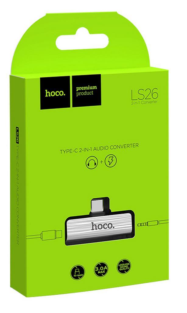Αντάπτορας Hoco LS26 2 σε 1 USB-C σε USB-C και 3.5mm 1.5A Ασημί