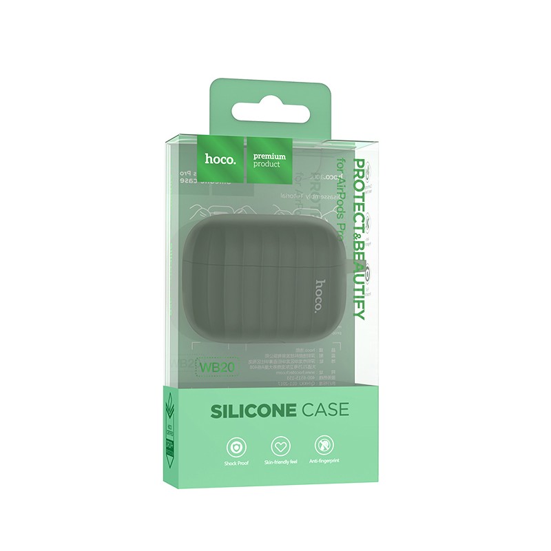 Θήκη Hoco WB20 Fenix Liquid Silicone Protective Σκούρο Πράσινο για Airpods Pro με Λουράκι. Η ειδική του σύνθεση έχει πάχος 2mm και παρέχει προστασία από ιδρώτα και δαχτυλικά αποτυπώματα. Διαστάσεις: 75x46x26mm Βάρος: 16g