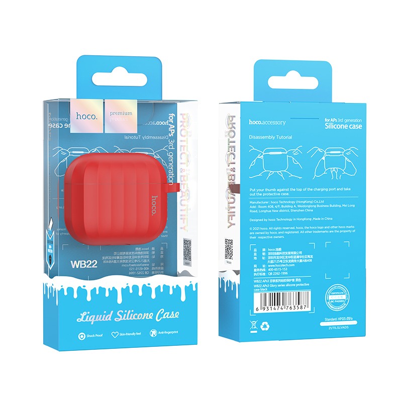 Θήκη Hoco WB22 Glory Series Silicone Protective Case Κόκκινο για AirPods 2021 (3ης γενιάς) με Γάντζο. Η ειδική του σύνθεση έχει πάχος 1,5mm και παρέχει προστασία από ιδρώτα και δαχτυλικά αποτυπώματα.