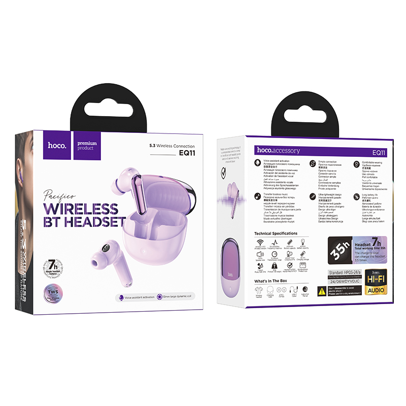 Wireless Hands Free Hoco EQ11 Pacifico TWS V5.3 400mAh Μωβ