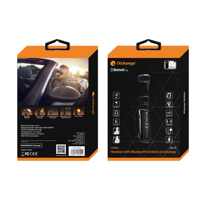Retractable BT Headset UA31 iXchange Black
