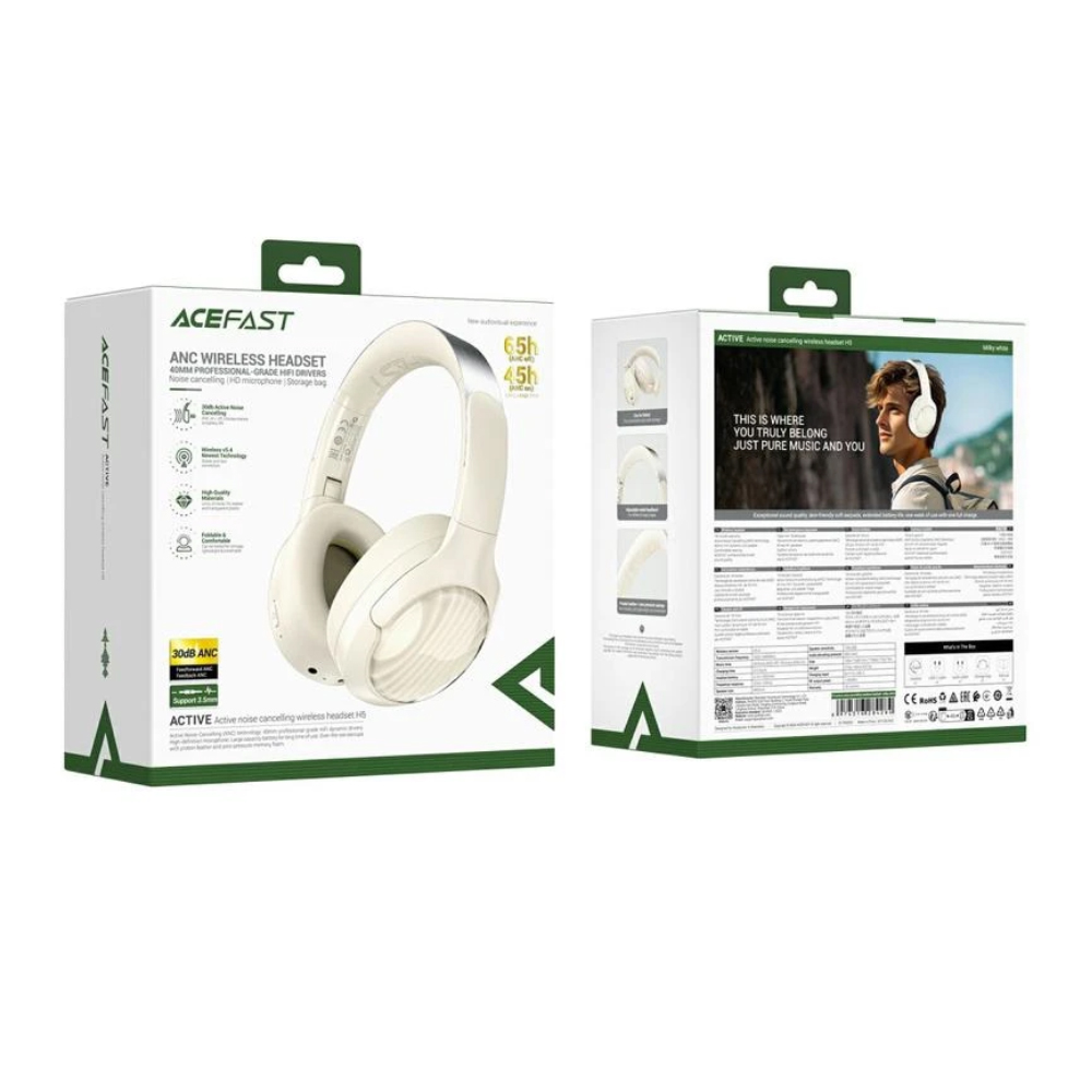 Wireless Ακουστικά Stereo Acefast H5 500mAh v5.4 ANC AUX με Μικρόφωνο Milky White
