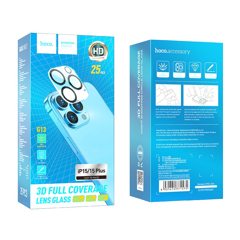 Προστασία Κάμερας Hoco 3D All-Inclusive Night Shooting G13 για Apple iPhone 15 / iPhone 15 Plus Σετ 25τμχ