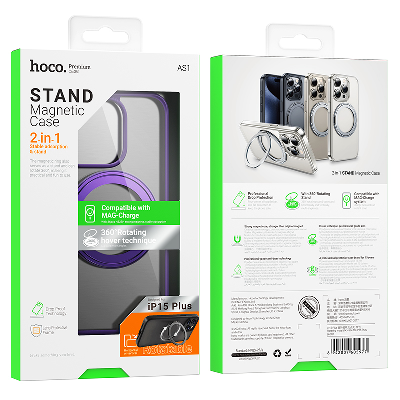 Θήκη Hoco Stand Magnetic Case 2 in 1 Mag-Charge 360° Rotating Ring για Apple iPhone 15 Plus Μωβ