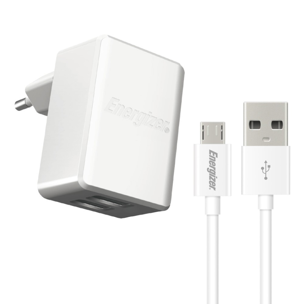 Φορτιστής Ταξιδίου Energizer ACW2CEUUMC3 με 2 θύρες USB A και Καλώδιο Micro USB 1m