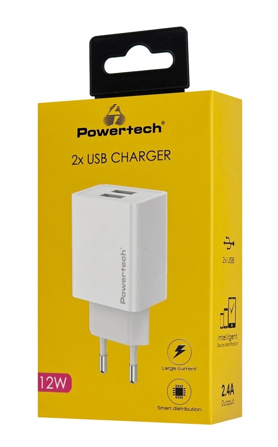 POWERTECH φορτιστής τοίχου PT-1321, 2x USB, 12W, λευκός