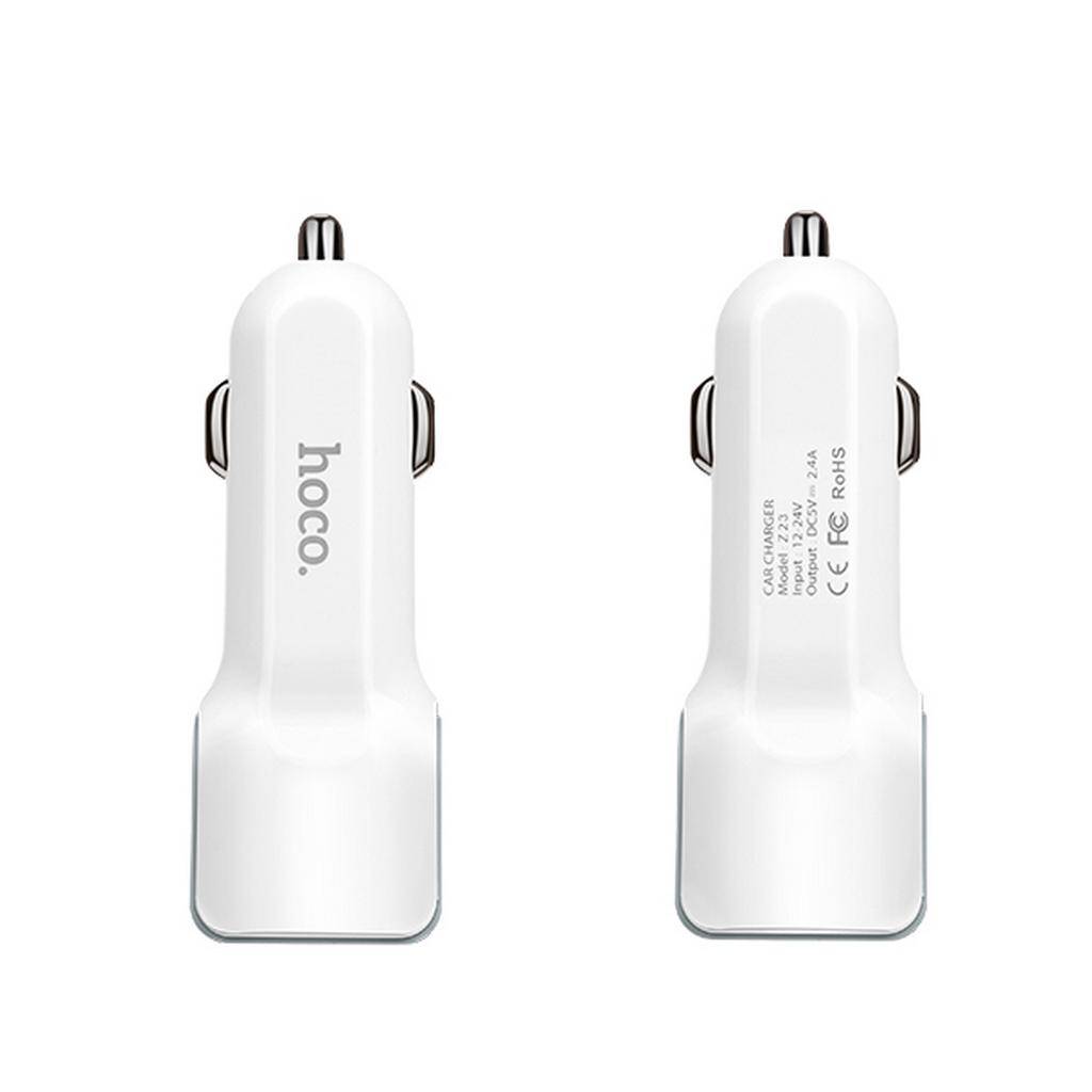Φορτιστής Αυτοκινήτου Hoco Z23 Grand Style Dual USB Fast Charging 5V/2.4A 12W και Είσοδο 12/24V Λευκός. Προστασία πολλών κυκλωμάτων. Συμβατό με περισσότερες από 99% ψηφιακές συσκευές φόρτισης USB. Output: USB total output: 5V/2.4A/12W, Single USB output: