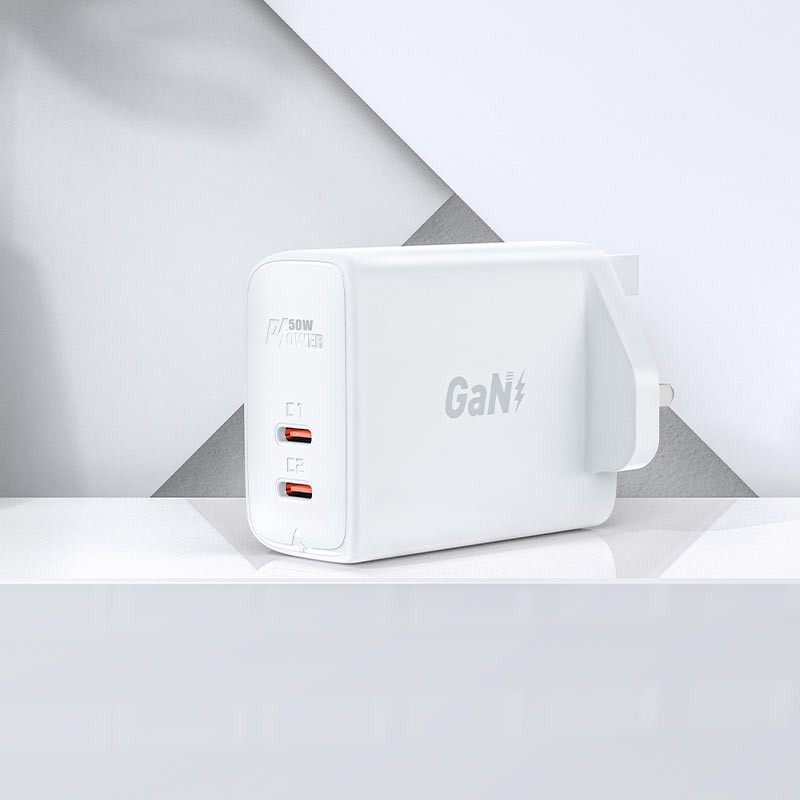 Φορτιστής Ταξιδίου Acefast A32 Fast Charging 2xUSB-C PD50W GaN με UK Plug. Υποστηρίζει PD50W, AFC, FCP και άλλα πρωτόκολλα φόρτισης. Με GaN για σταθερή φόρτιση, ταχύτερη ψύξη και μικρότερο μέγεθος. Συμβατός με το 99% ψηφιακών συσκευών φόρτισης USB. Είναι