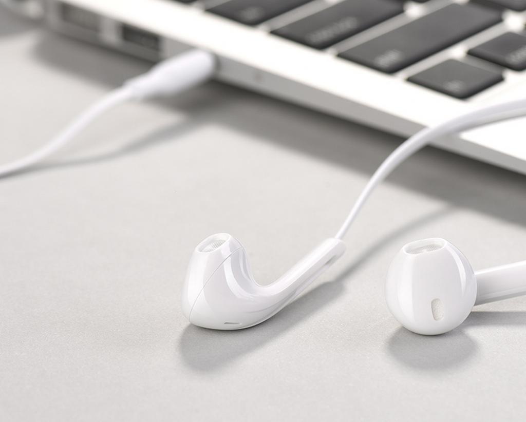 Hands Free Hoco M39 Rhyme Sound Earphones Stereo 3.5mm Λευκά με Μικρόφωνο και Πλήκτρο Λειτουργίας. Βάρος 11g, μήκος καλωδίου 1.2m . Ηχείο 14mm, ευαισθησία 96dB +/-3dB, απόκριση συχνότητας 20Hz – 20KHz, αντίσταση 32Ω +/- 15%, ποιότητα ήχου HiFi