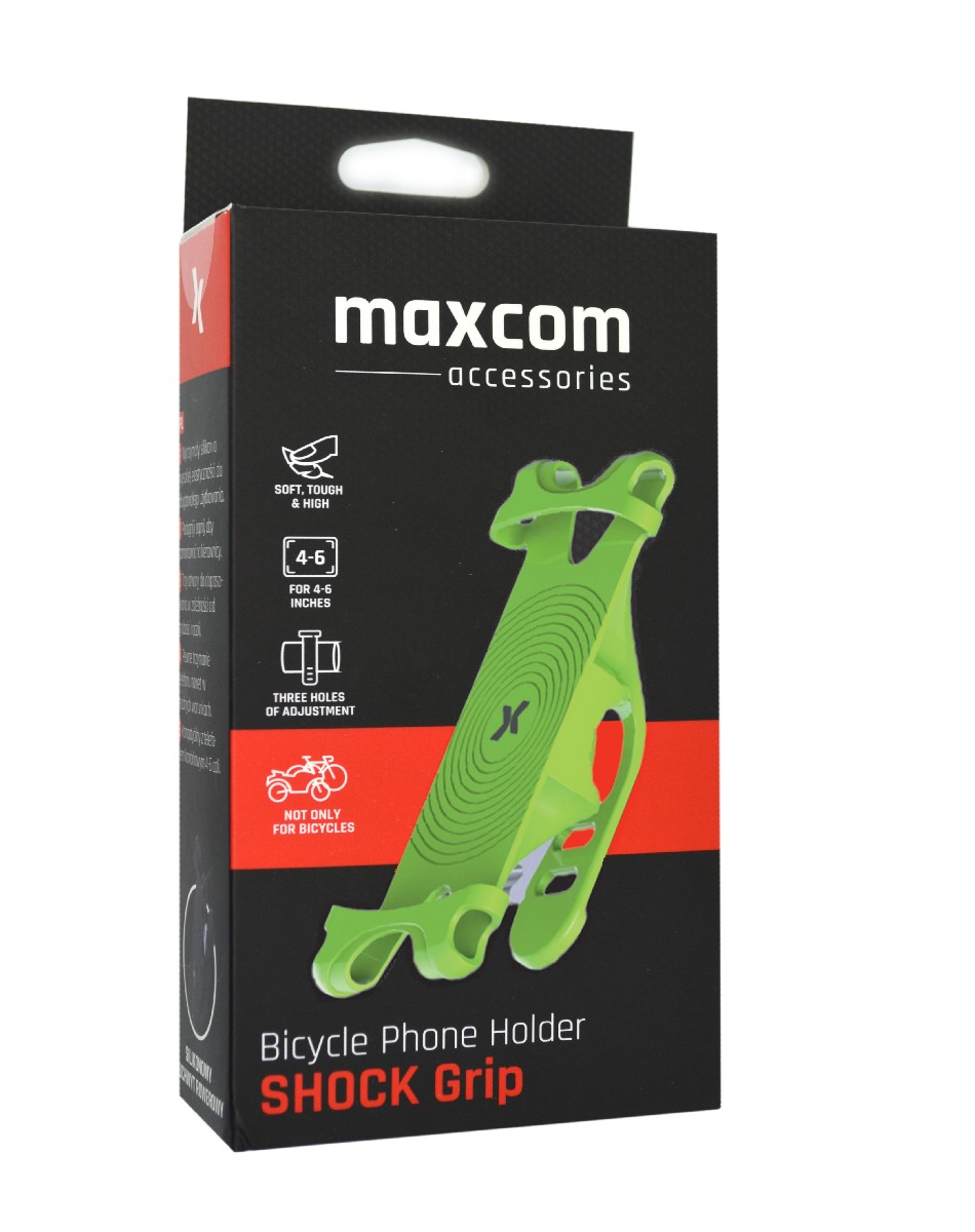Βάση Στήριξης Ποδηλάτου Maxcom Shock Grip για Smartphone Πράσινη με εφαρμογή σε Μηχανές και Scooter. Η βάση είναι ιδανική για το κινητό αλλά και για συσκευές PowerBank ενώ η σιλικόνη στην λαβή επιτρέπει την ασφαλή τοποθέτηση χωρίς μετατοπίσεις απορροφώντ