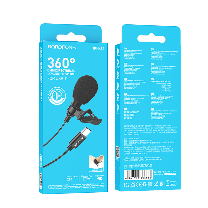 Μικρόφωνο Πέτου Hoco BFK11 Elegant Lavalier με USB-C Καλώδιο 2m