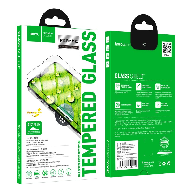Tempered Glass Hoco A12 Plus Nano 3D Full Screen Edges Protection 9H για για Apple iPhone 13 Pro Max