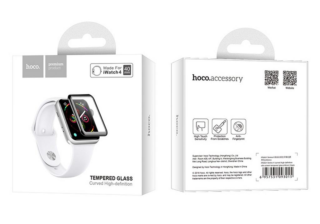 Tempered Glass Hoco 0.15mm Curved Silk Screen 40mm για Apple Watch 4 Μαύρο