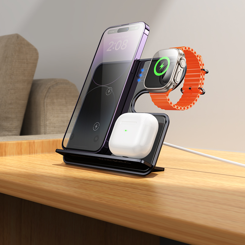 Επιτραπέζια Βάση Ασύρματης Φόρτισης Hoco CQ19 Falcon 3-σε-1 15W Κάθετη Φόρτιση 3 Συσκευών Μαύρη