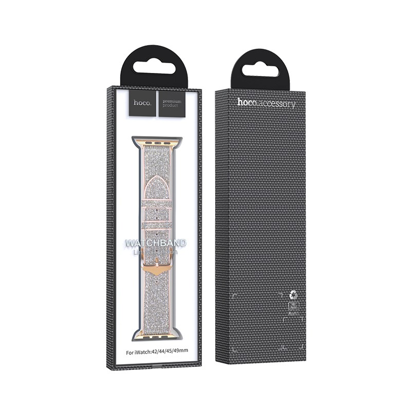 Watchband Hoco WA11 Diamond series 42/44/45/49mm για Apple Watch 1/2/3/4/5/6/7/8/SE/Ultra Λευκό Ασημ
